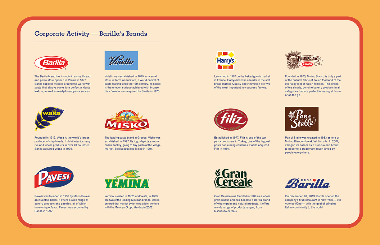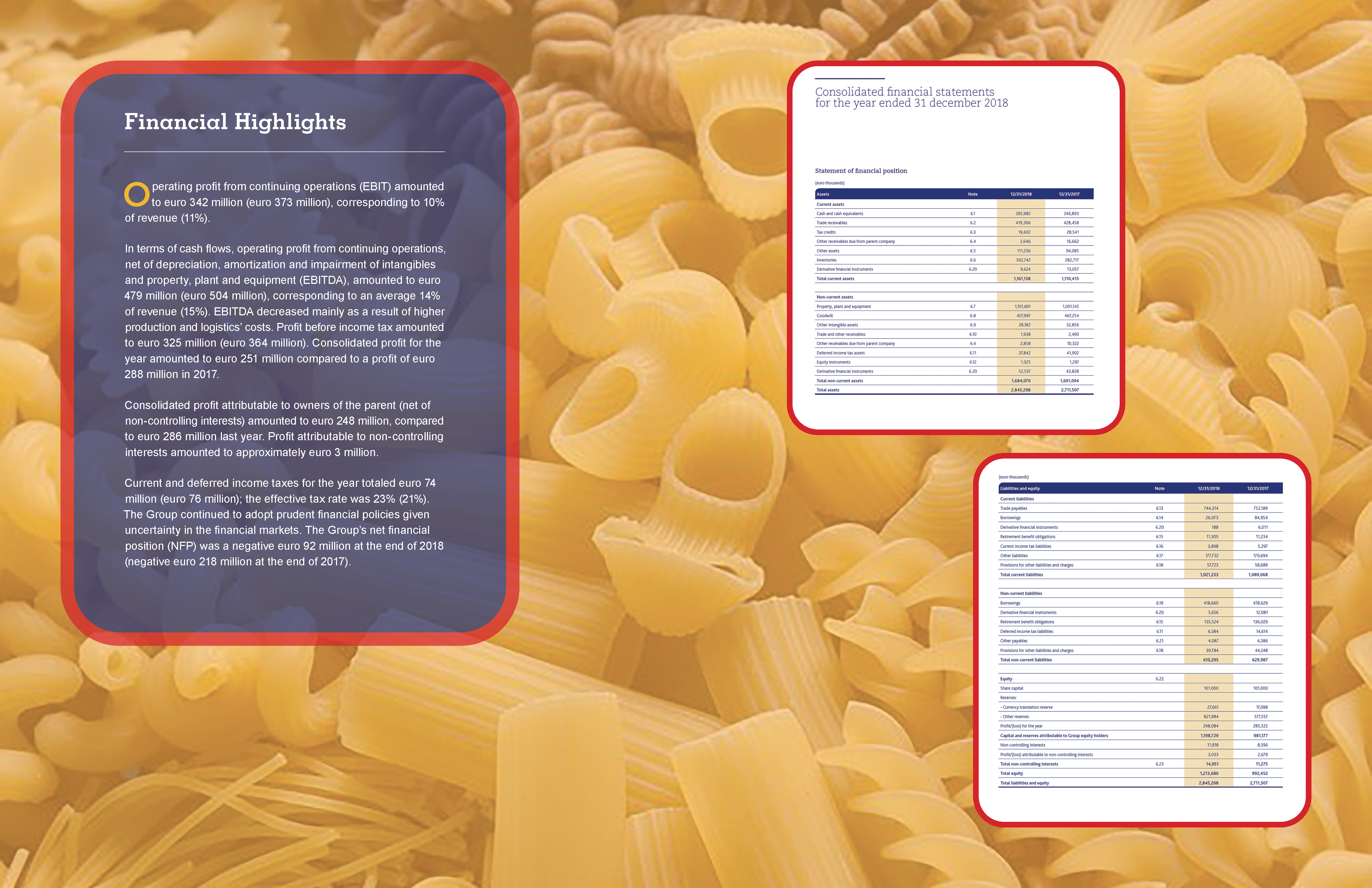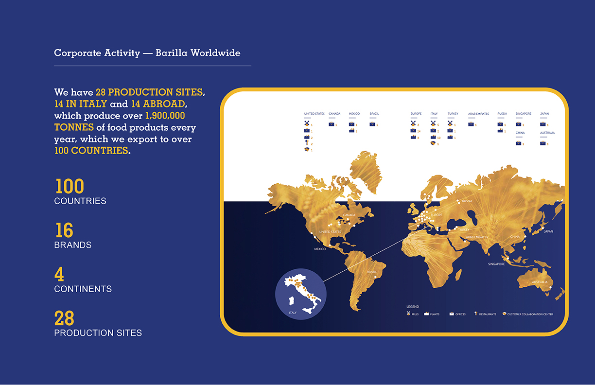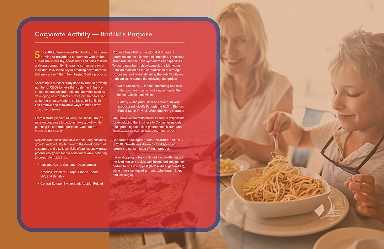 When I got access to Barilla's annual report, it was important to me to create a hierarchy and determine which information I was going to emphasize. It was also a fun challenge to produce a visual aesthetic that is true to the brand.