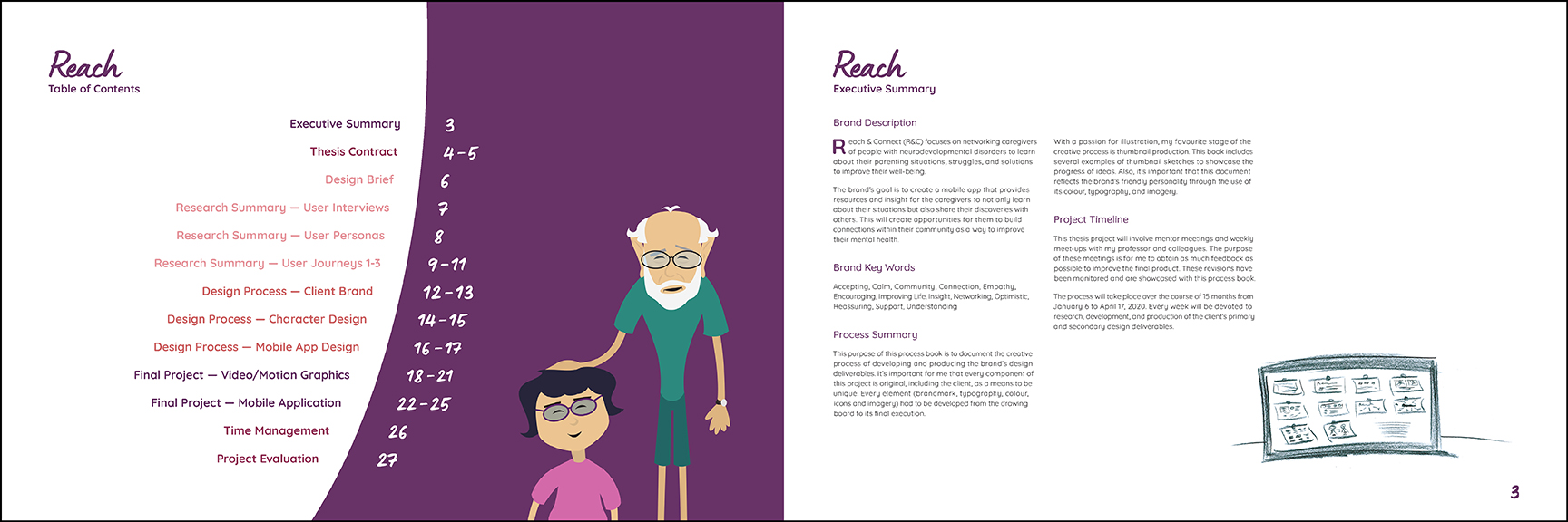 For my design thesis during the Graphic Design program at George Brown College, I chose to explore the topic of parenting individuals with neurodevelopmental challenges. It was inspired by my own upbringing growing up with a sibling that has autism, and how my parents cared for him.