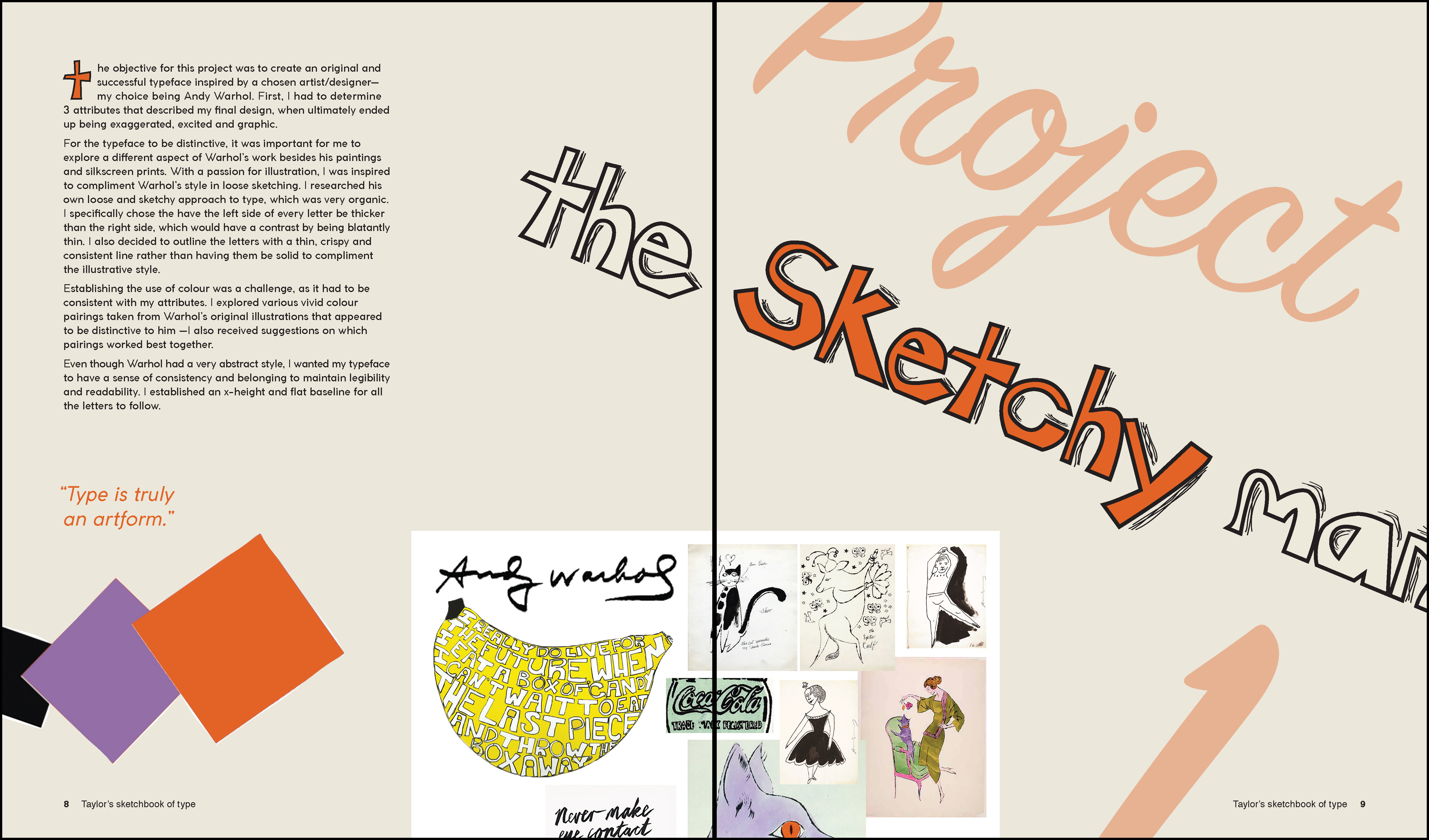 For my typography course, I was given the challenge to produce my own typeface inspired by artist and designers of my choice.